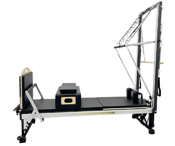 Fabricado con un marco de aluminio anodizado de alta calidad, este reformer garantiza ligereza sin comprometer la estabilidad, lo que lo convierte en una opción ideal tanto para espacios profesionales como para uso doméstico avanzado. Su diseño incorpora carril deslizante de precisión, torre con múltiples accesorios, y sistemas ajustables que permiten adaptar cada ejercicio al nivel y objetivo del usuario.